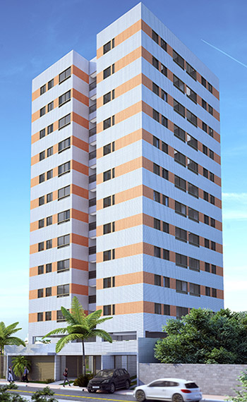 2 quartos, sendo um suíte, sala, varanda, WC social, cozinha com área de serviço e laje técnica para instalação de Ar condicionado Split. Área privativa de 58,43 ou 57,19 metros quadrados.